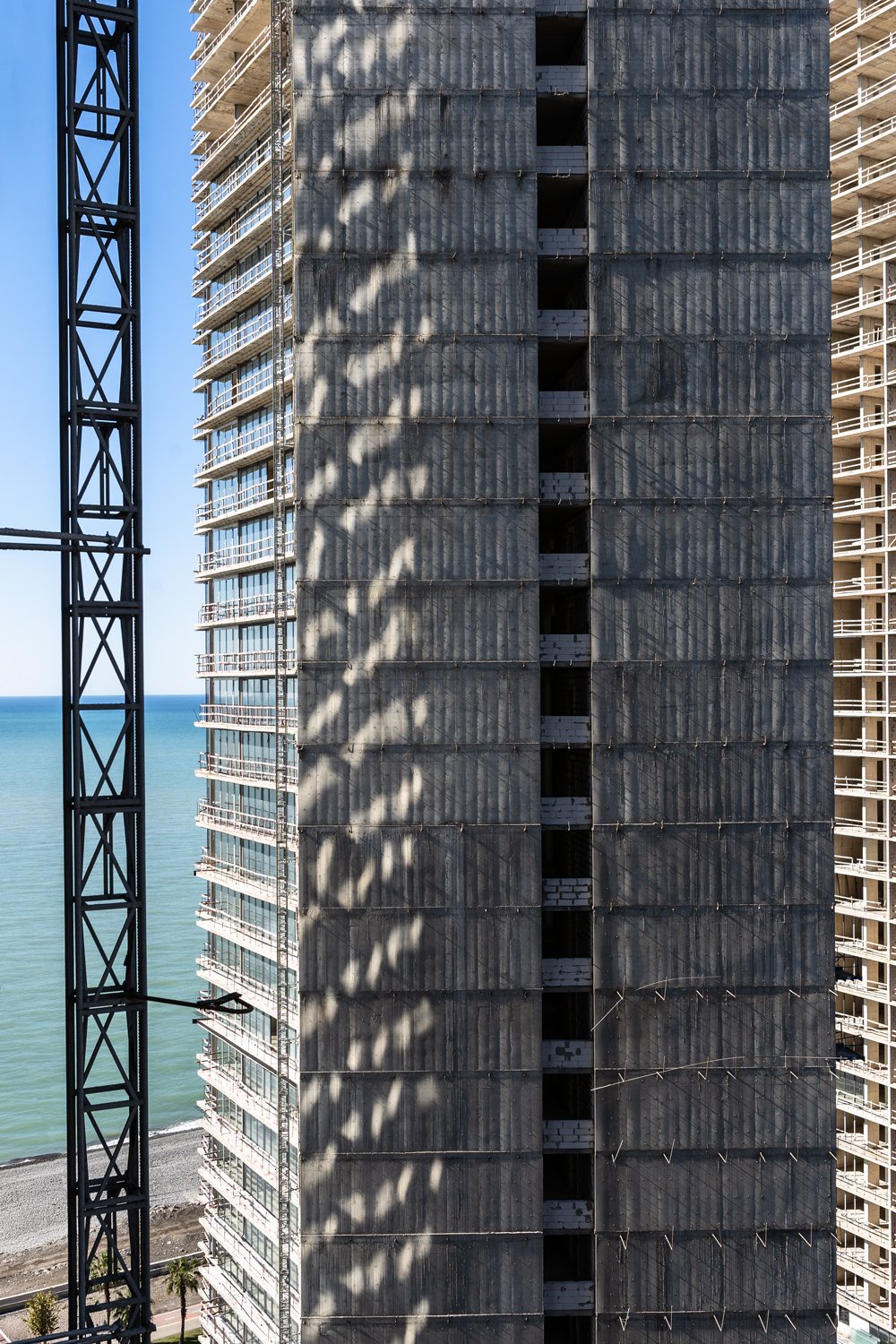 During our second day immersed in this surreal dreamscape, the urge to ascend one of the supertall towers became difficult to resist. We set our sights on the most intriguing of them all: The Black Sea Pearl Tower rising directly between the beach and the New Boulevard. It quickly became clear that the building was, in fact, a ghost tower, too: an abandoned or partially stalled construction site.